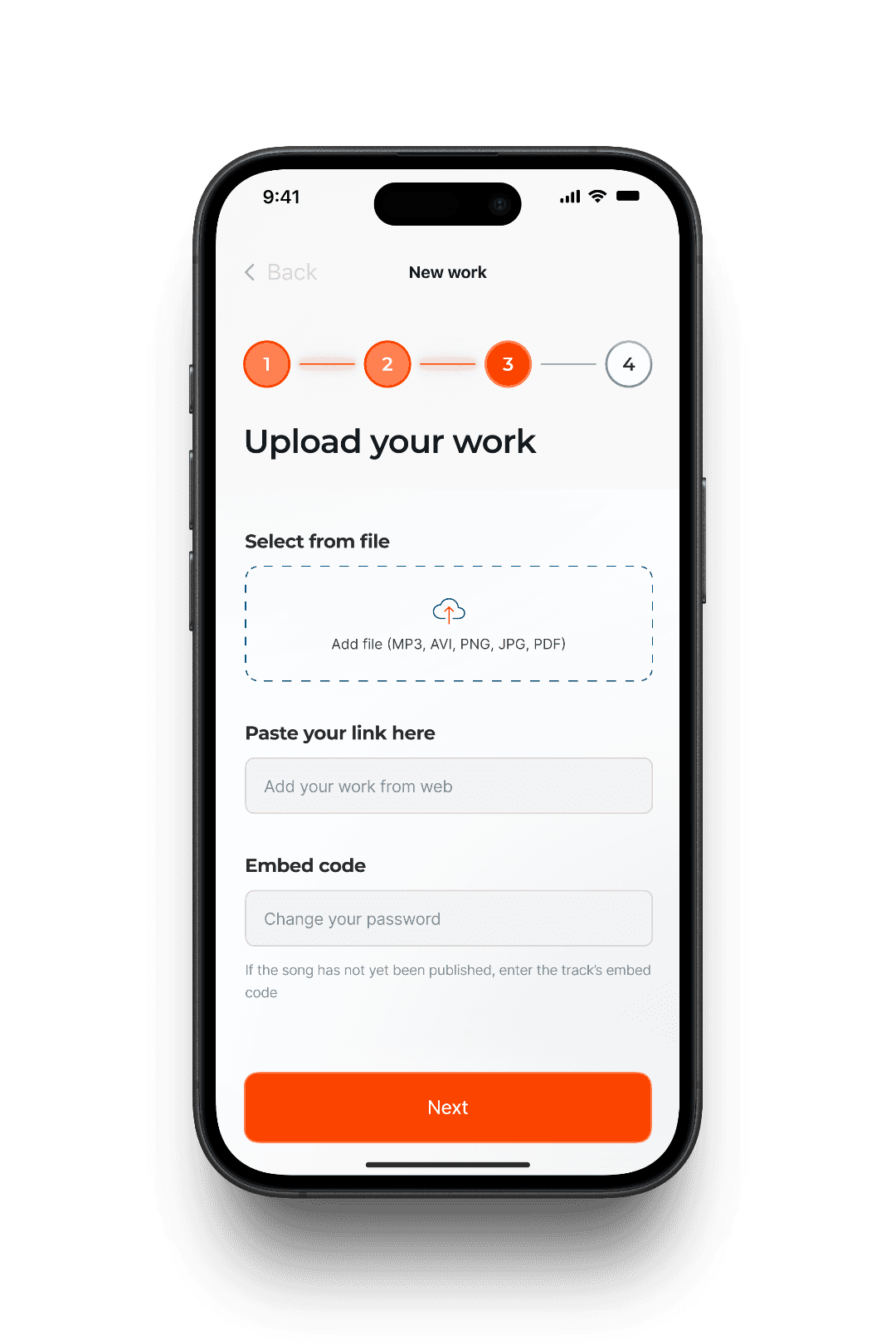 Add a playable embed so curators can listen on the spot. Artymind supports Spotify, SoundCloud, YouTube, and Disco players—just copy the embed code from your chosen platform and paste it into your submission.